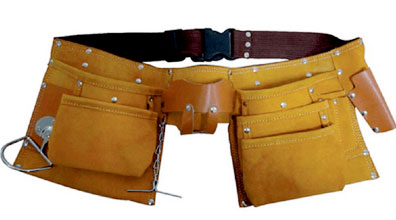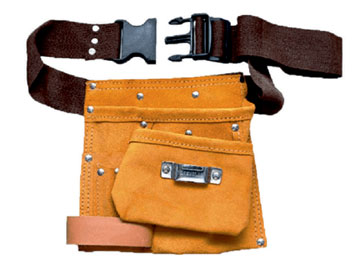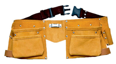 • 2 Large main pockets • 2 Small nail pockets • 7 Small tool pockets • 2 Leather hammer loops • 1 Metal tape holder • Adjustable belt with quick release buckle